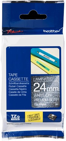 páska BROTHER TZePR955 biele písmo, strieborná premium páska Tape (24mm)
