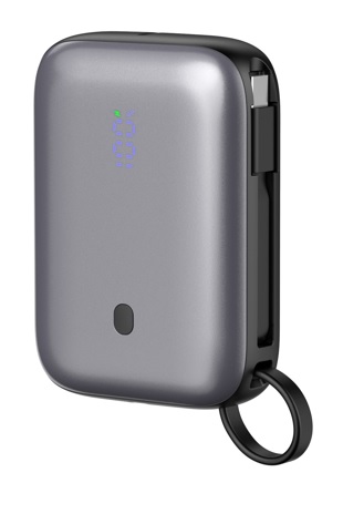 Powerbanka má integrovaný USB-C kábel, takže sa nemusíte obávať, že ste ho zabudli doma alebo v aute.
