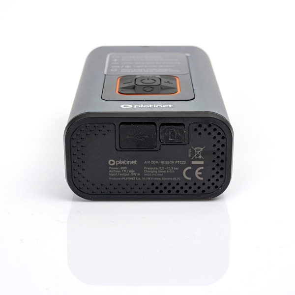 Platinet PTC22 SET 3v1 Powerbanka 4000 mAh, digitálny vreckový kompresor 10 BAR, LED svietidlo, strieborný